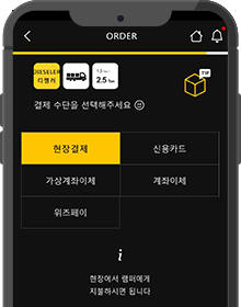 램퍼 앱 실행 후 좌측 상단에 위치한 오더(Order) 버튼을 눌러주세요.